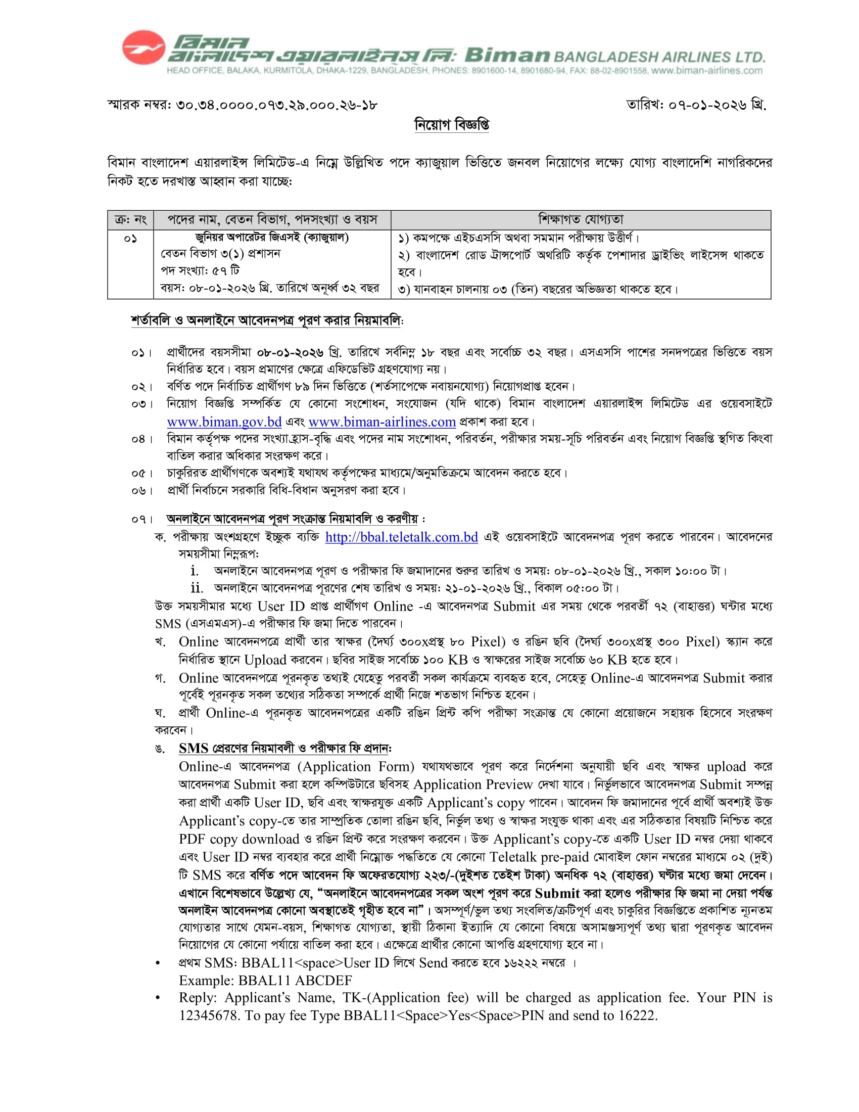 বিমান বাংলাদেশ এয়ার লাইন্সে চাকরির নিয়োগ বিজ্ঞপ্তি ২০২৬